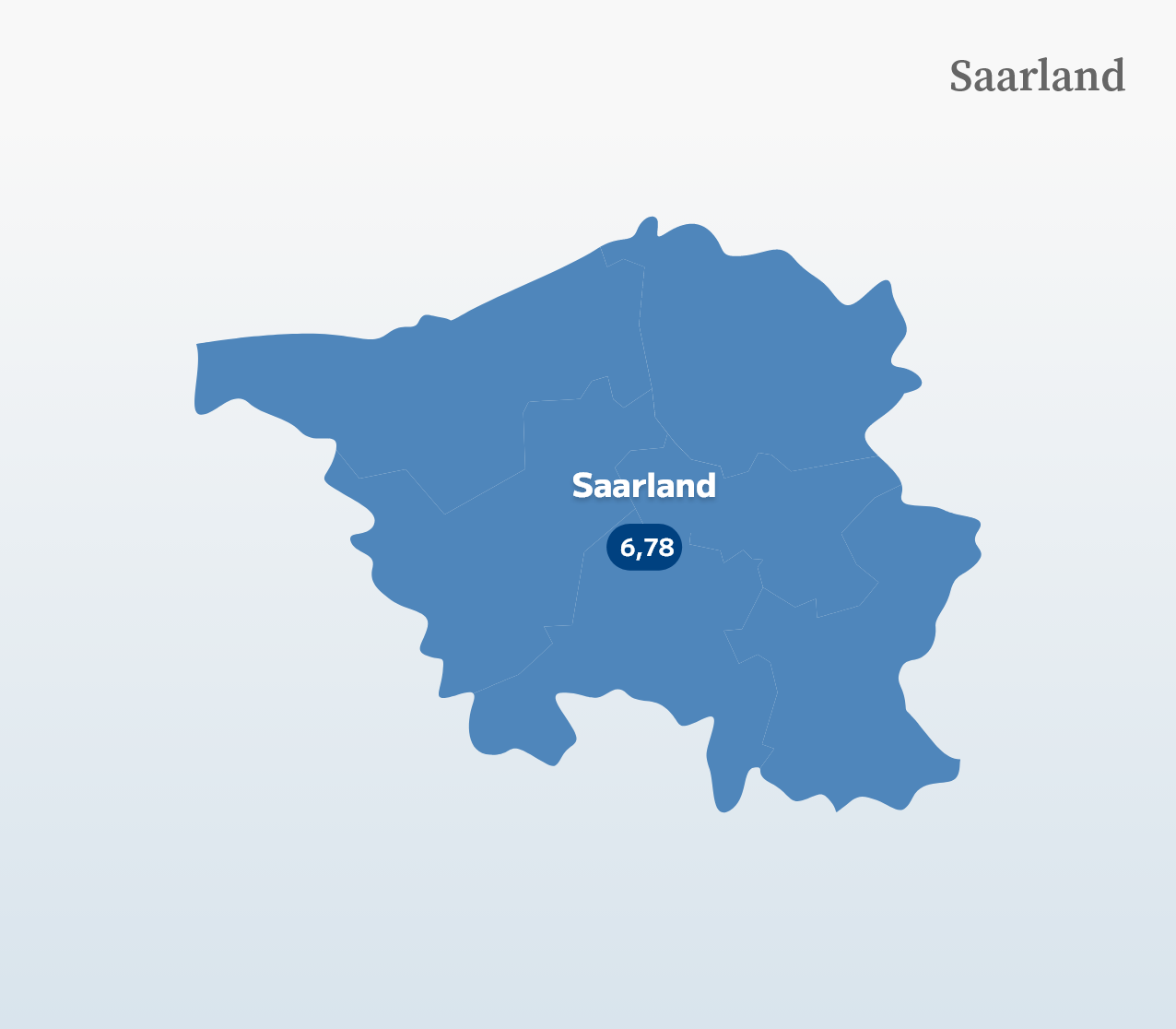 Lebenzufriedenheit im Durchschnitt im Saarland 2025: 6,78
