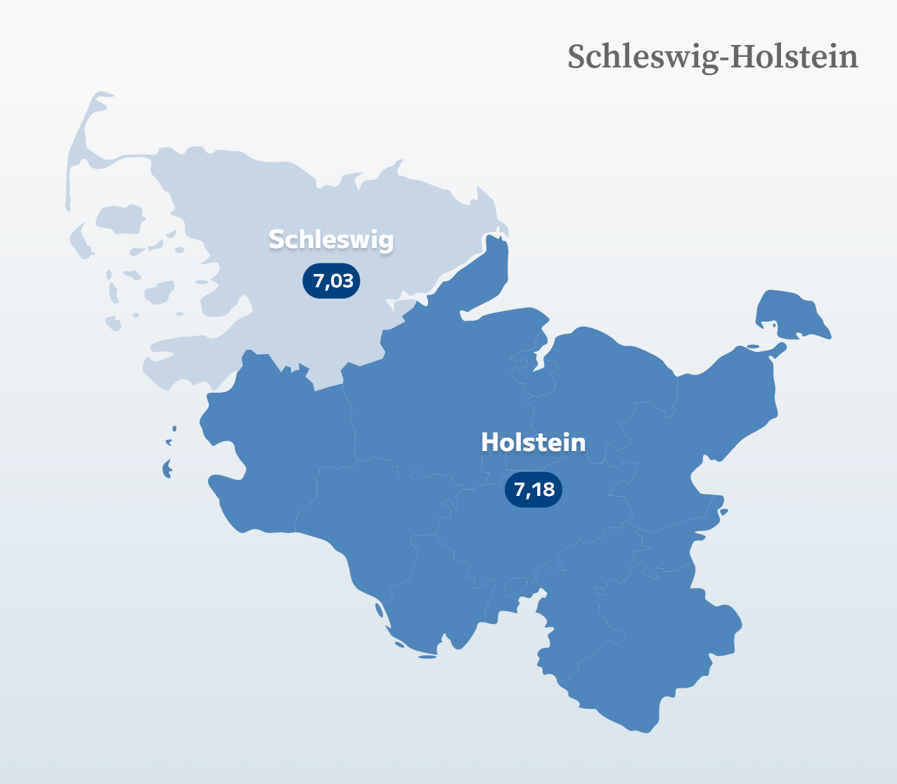 Die Holsteiner sind 2025 mit ihrem Leben zufriedener als die Schleswiger. Besonders hoch ist die Lebenszufriedenheit im Raum Hamburg sowie in Kiel.