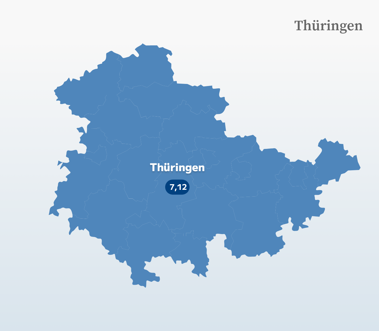 Lebenzufriedenheit im Durchschnitt in Thüringen 2025: 7,12